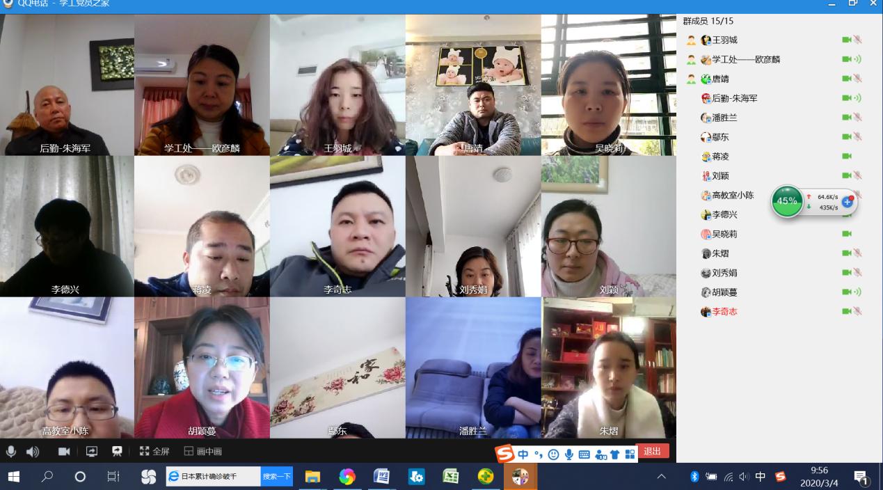 3月4日上午9点,学工与团委直属党支部召开全体党员视频会议。胡颖蔓副校长以“不忘初心,牢记使命,众志成城,抗击疫情”为题,结合当前疫情防控工作给学工与团委直属党支部全体党员上了一堂生动精彩的党课。党支部书记、学工部(处)朱海军处长按照党委宣传部的相关安排,组织大家认真开展网上政治学习。