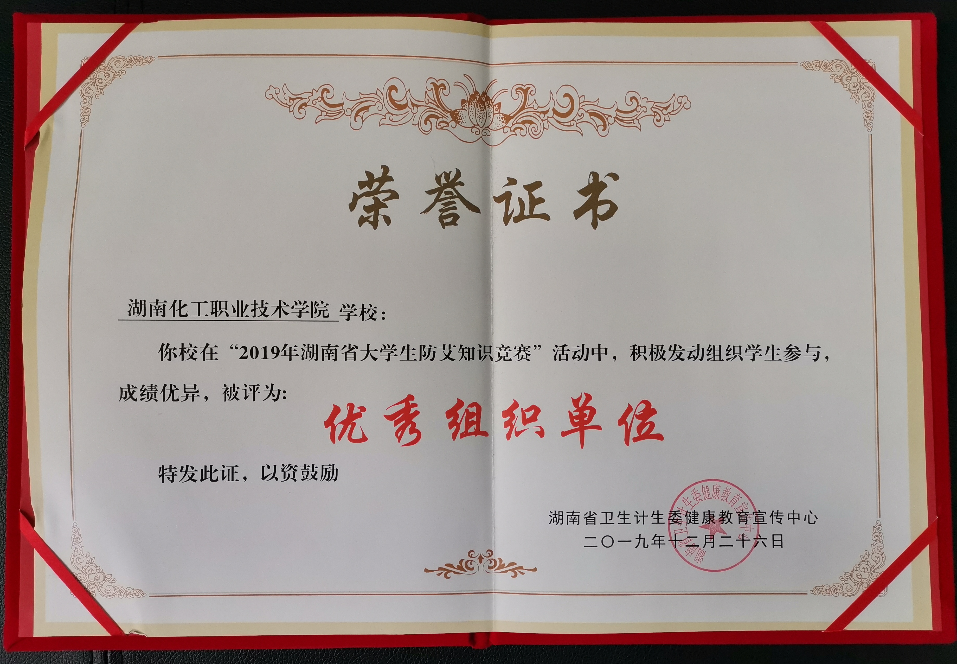 我校在“2019年湖南省大学生防艾知识竞赛”中荣获“优秀组织单位”称号