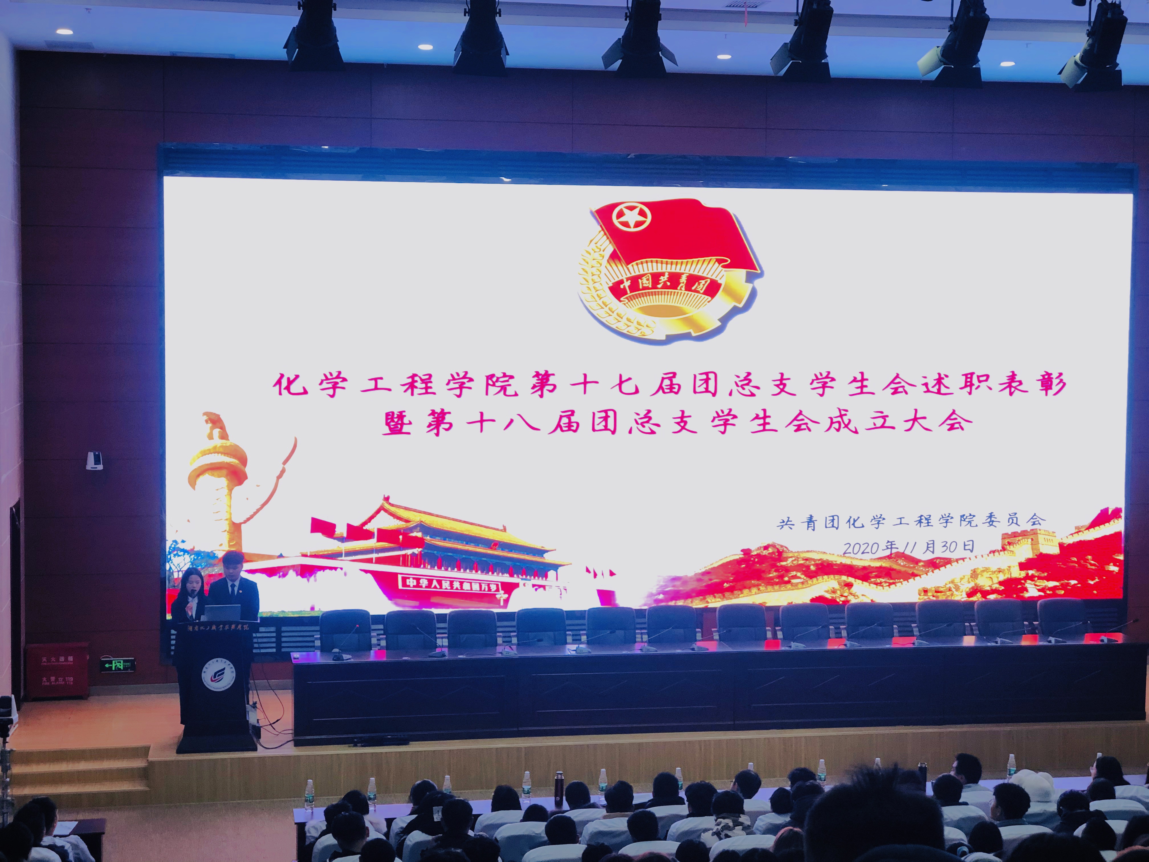 11月30日中午,化学工程学院在学校图书馆二楼报告厅举行了第十七届团学干部述职、表彰暨第十八届团总支学生会成立大会,学院党总支副书记温拥军、学工办主任尹琦、团总支书记李湘及全体辅导员老师、学生代表300余人参加了本次会议。