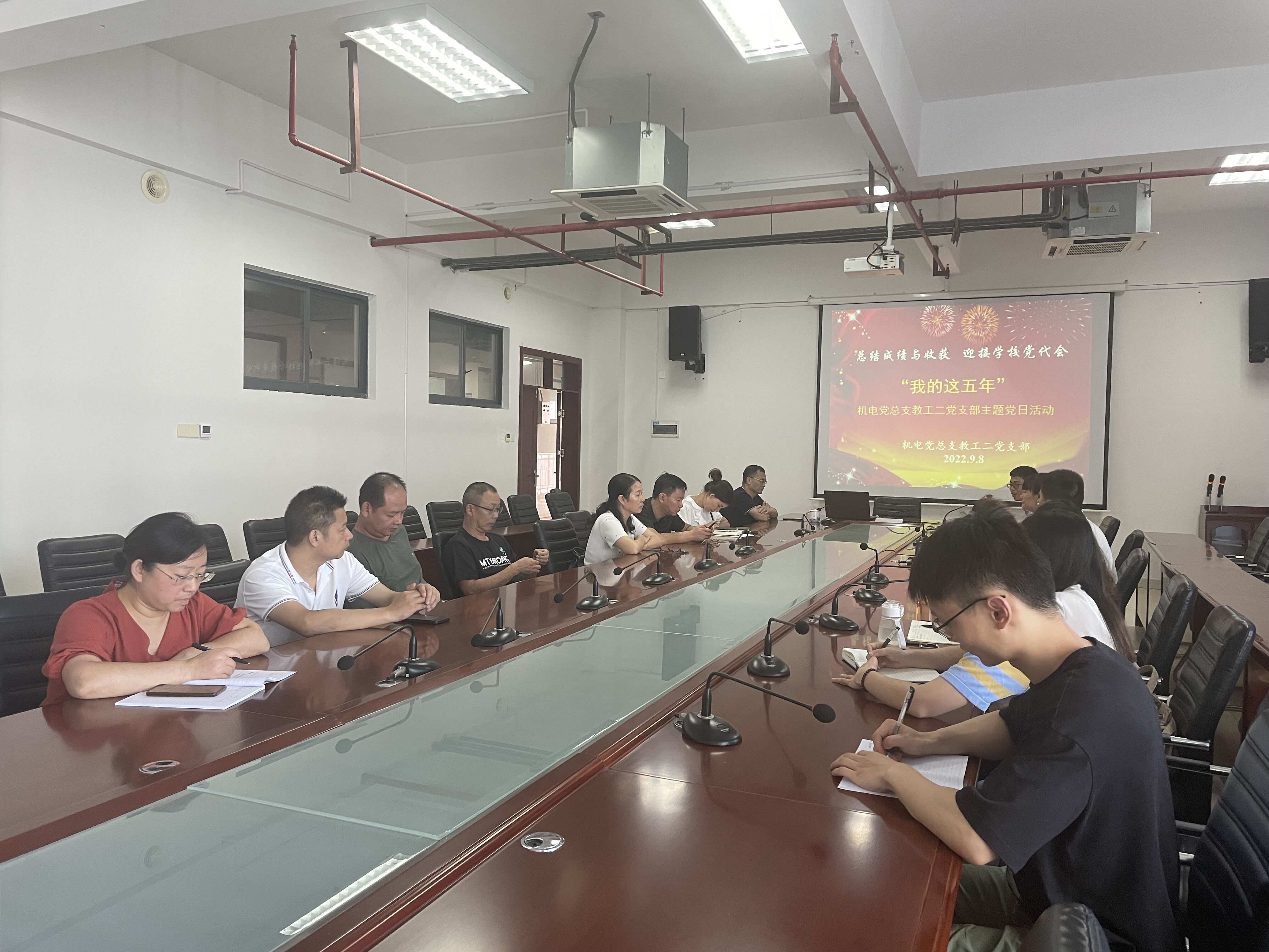9月8日中午,机电工程学院党总支教工二党支部在笃学楼318会议室开展主题党日活动,围绕“我的这五年”的主题,总结个人在学校过去五年快速发展历程中的成绩与收获,并介绍个人未来五年的发展规划。