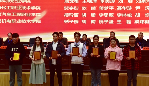 随后,肖望龙宣布机器人系统集成赛项选手成绩,曾成志宣布创新创业赛项选手成绩,出席闭幕式的领导和嘉宾为比赛获奖团队颁发奖牌和荣誉证书。