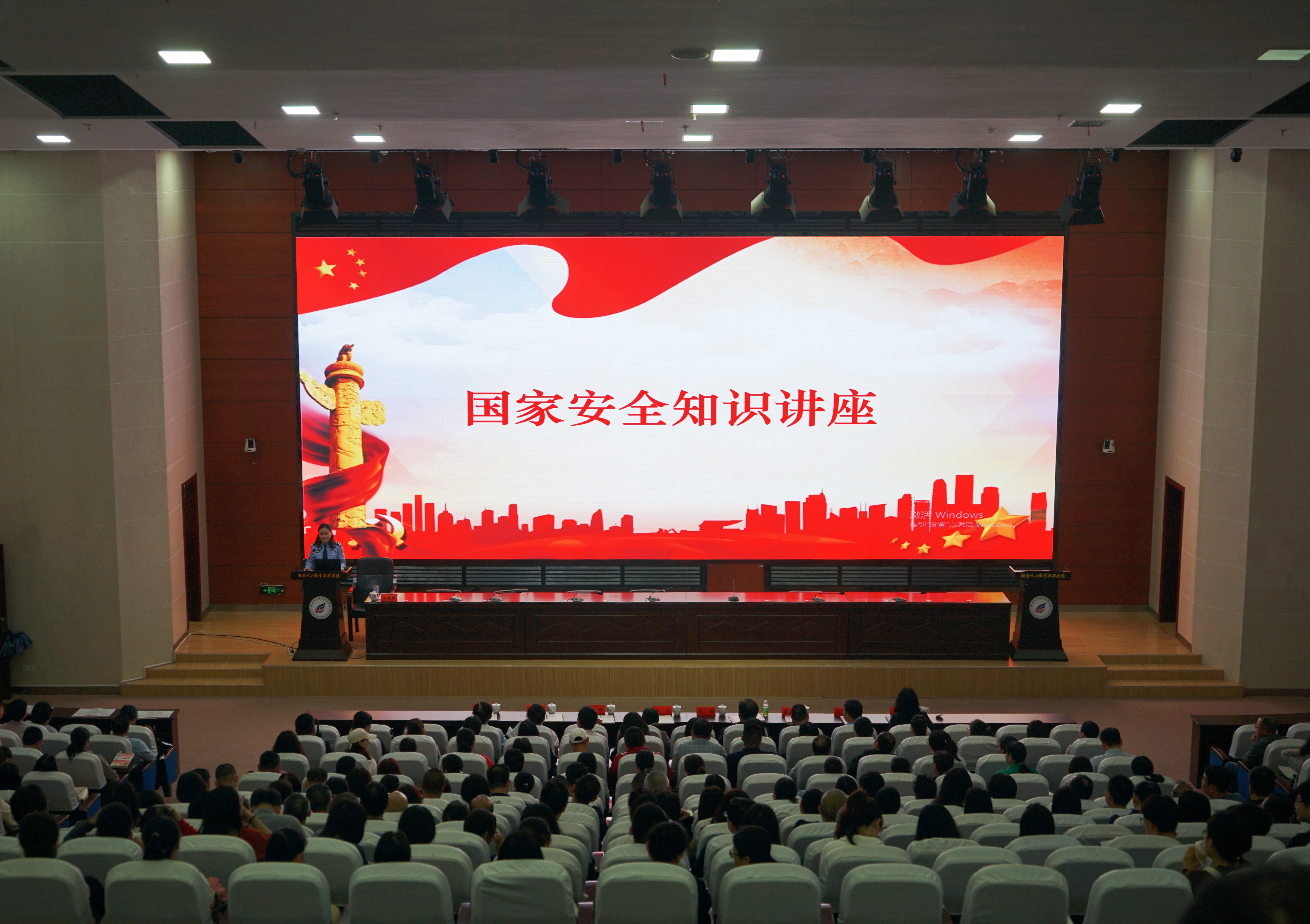 4月15日是我国第九个全民国家安全教育日,为牢固树立和全面践行国家安全观,切实提高我校教师队伍国家安全意识,夯实国家安全基础,使关心、维护国家安全的理念成为全体教师的思想共识和行动自觉,在校党委高度重视下,4月16日学校特邀株洲市国家安全局科长文雅琼到校开展“全民筑安全、护航中国梦”主题讲座。全体校领导和教职工聆听讲座,副校长刘艳主持讲座。