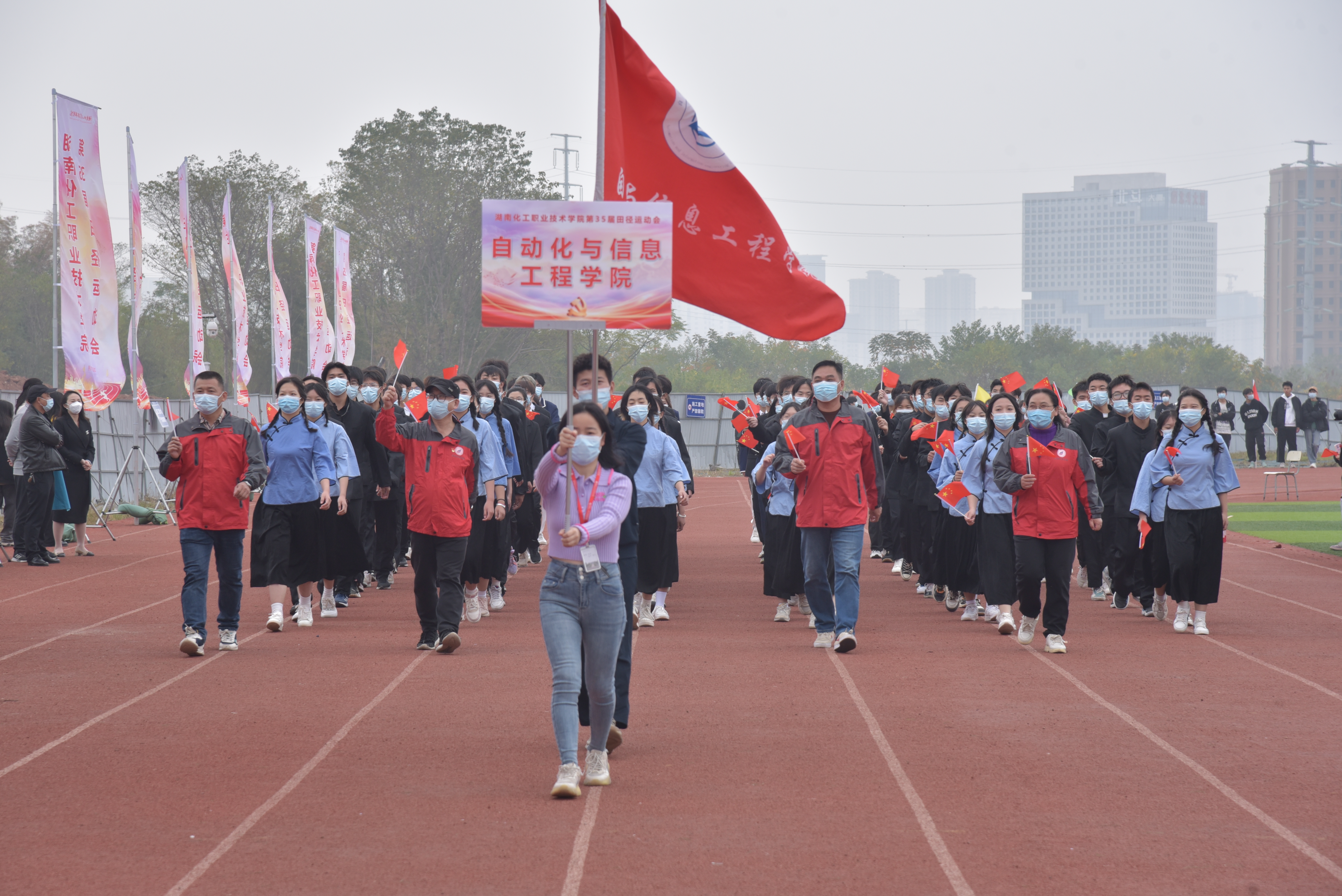 11月24日,在全校师生的殷切期盼中,学校迎来了第35届田径运动会,本届运动会的主题为“青春逐梦新征程,踔厉奋发向未来”。下午1:30,在学校田径场举行了运动会开幕式,学校党委书记陈超,校长隆平,纪委书记肖耀南,副校长王为、童孟良、胡颖蔓,宣传统战部部长阳良明等领导出席开幕式。开幕式由副校长胡颖蔓主持。