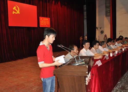会上,党委组织部部长阳良明带领新发展的党员在党旗下庄严宣誓。学院党委副书记、副院长石绍军宣读了学院先进党总支、先进党支部、优秀共产党员、优秀党务工作者和“模范作用好”的学生党员的表彰决定。与会学院领导向获奖的先进单位和个人颁发了证书。新党员代表化学工程系石化1212班叶云同学、先进党总支代表经济管理系党总支书记全国林、优秀共产党员代表制药与生物工程系肖怀秋老师在会上先后发言,表示将在学院党委、行政的正确领导下,认真履行岗位职责,争取再创佳绩。