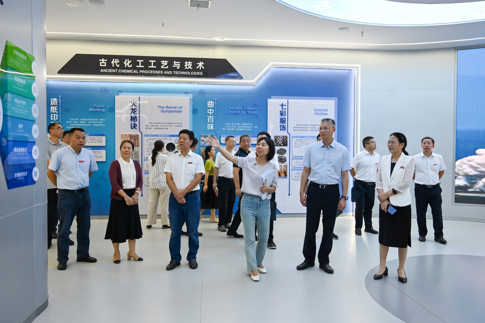他们先后参观了化工数字体验中心、煤制甲醇实训工厂和啤酒生产车间等现代化实训场地。在这些接近工业实景的“课堂”里,蒋昌波细致观摩,不时驻足询问,详细了解设备运行、教学流程和学生实操情况。