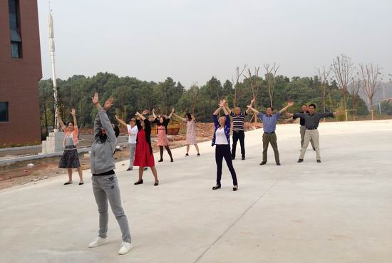 10月23日广播操时间,在刘望书记的带领下,全体参加学院党委会的人员暂停会议几分钟一起做操。