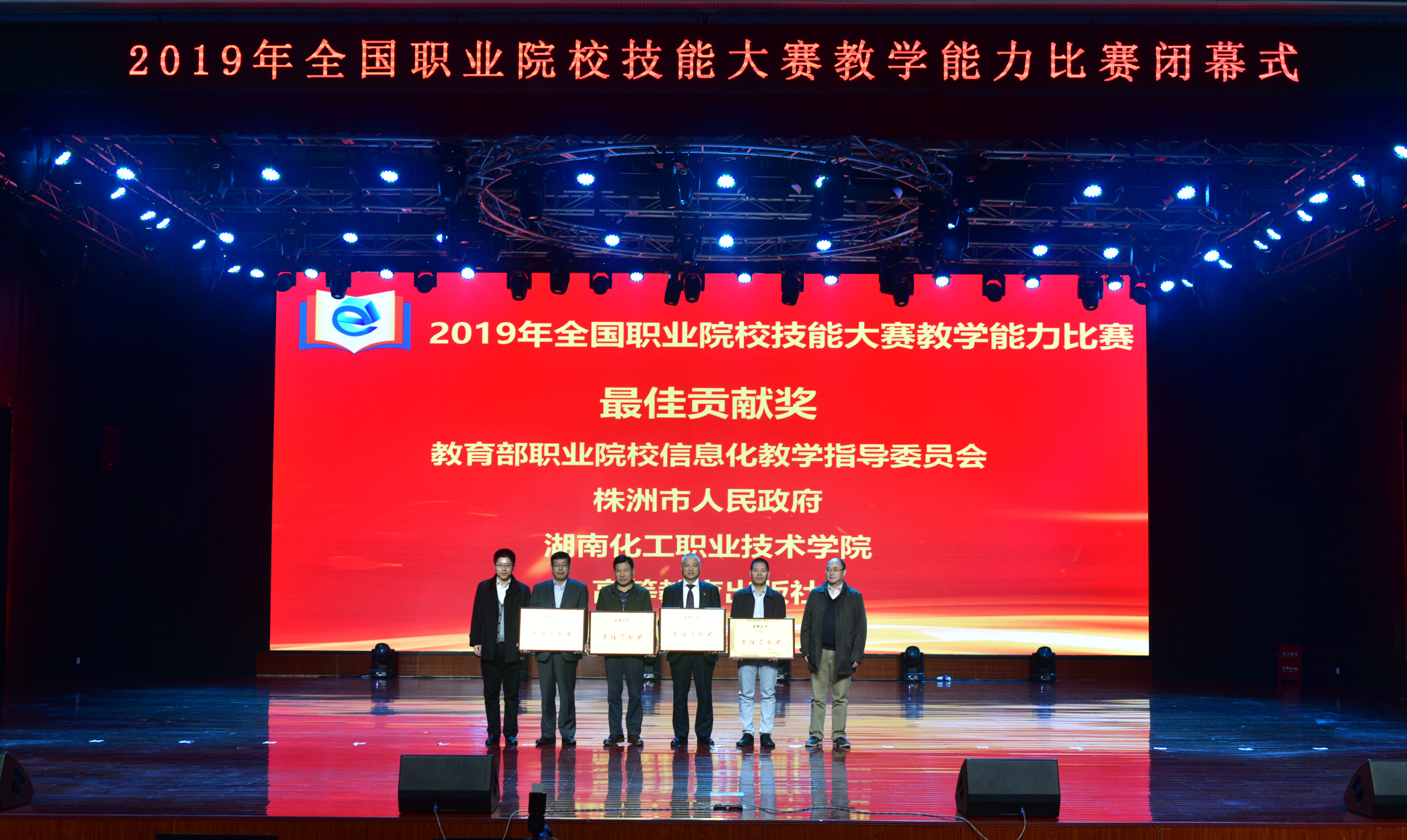 11月25日,为期三天的2019年全国职业院校技能大赛教学能力比赛现场决赛在湖南化工职业技术学院圆满落幕。教育部职业教育与成人教育司副司长谢俐,教育部职业技术教育中心研究所所长王扬南,湖南省教育厅党组副书记、副厅长、工委副书记王瑰曙,湖南省教育厅原巡视员、湖南省人民政府参事王键,株洲市人民政府副市长杨胜跃,高等教育出版社总编辑陈晓光,教育部科技司信息化处副处长任昌山,教育部财政部职教国培项目办副主任李新发,教育部职业院校信息化教学指导委员会主任委员、常州信息职业技术学院党委书记王钧铭,湖南省教育厅职业教育与成人教育处处长余伟良,株洲市教育局局长吴安浩,湖南化工职业技术学院院长王雄伟,高等教育出版社及有关部门领导,比赛执委会专家组成员、评委代表、各代表队领队、参赛教师,解放军和各省(区、市)观摩代表,新闻媒体代表等,共计1700余人出席了闭幕式。闭幕式由湖南省教育厅巡视员应若平主持。