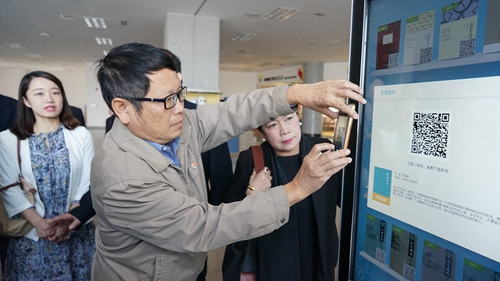 泰国职业教育代表团嘉宾扫码体验移动图书馆的便捷