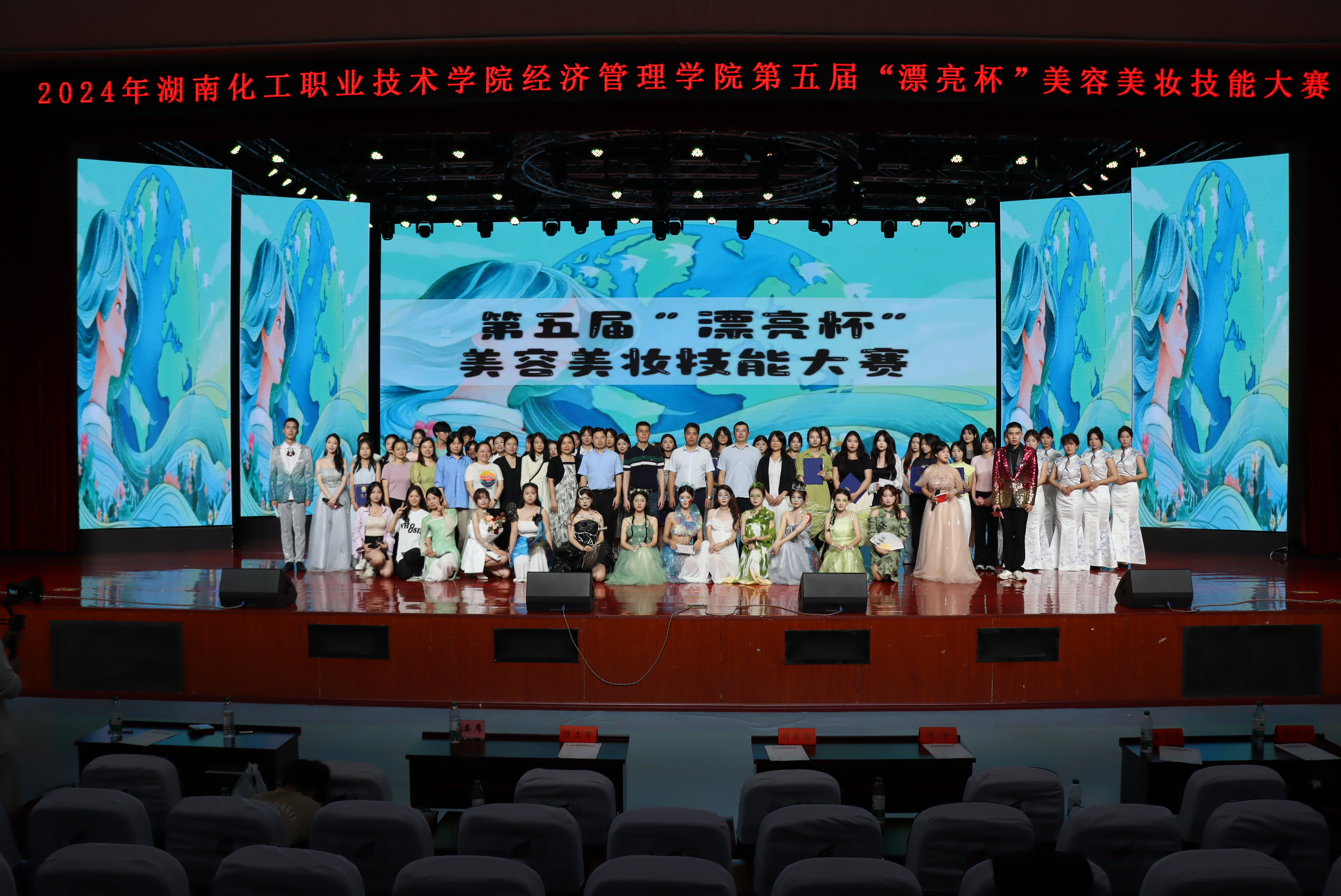 “让地球微笑,让万物呼吸”。6月18日18:30,经济管理学院在学校大礼堂举行第五届“漂亮杯”美容美妆技能大赛决赛。观看大赛的领导、老师有学校党委委员、副校长刘其琛,学生工作部部长陈宇,校团委书记陈土军,各二级学院党总支副书记,经管理学院领导班子成员,以及化妆品营销专业的评委老师们和辅导员老师们。