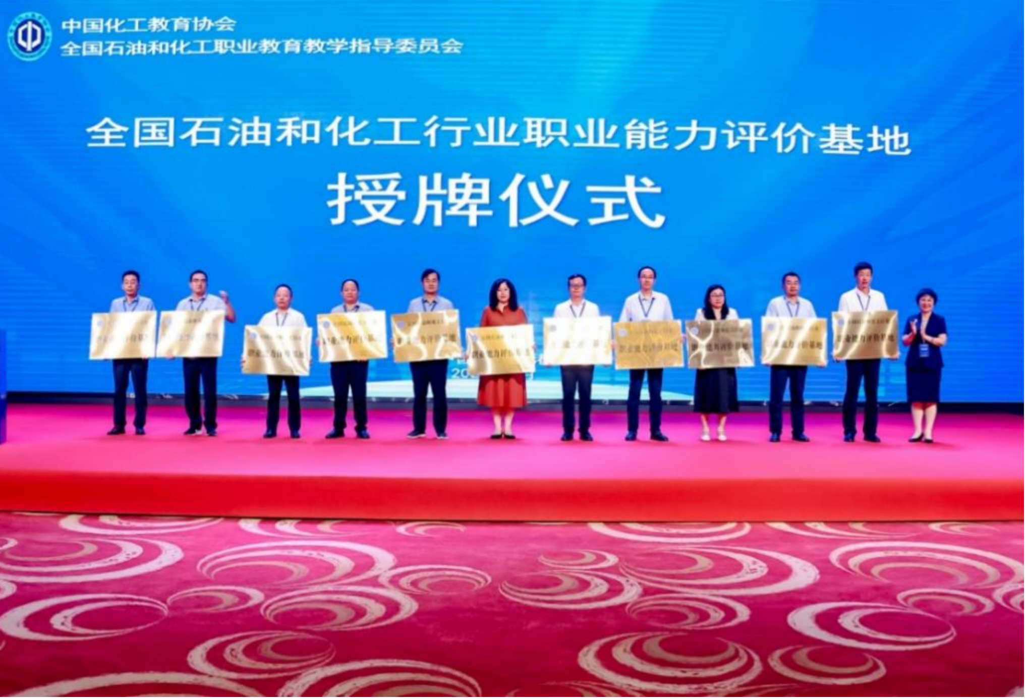 会上,我校喜获“全国石油和化工行业职业能力评价基地”,童孟良代表学校接受全国石油和化工行业职业能力评价基地的授牌。