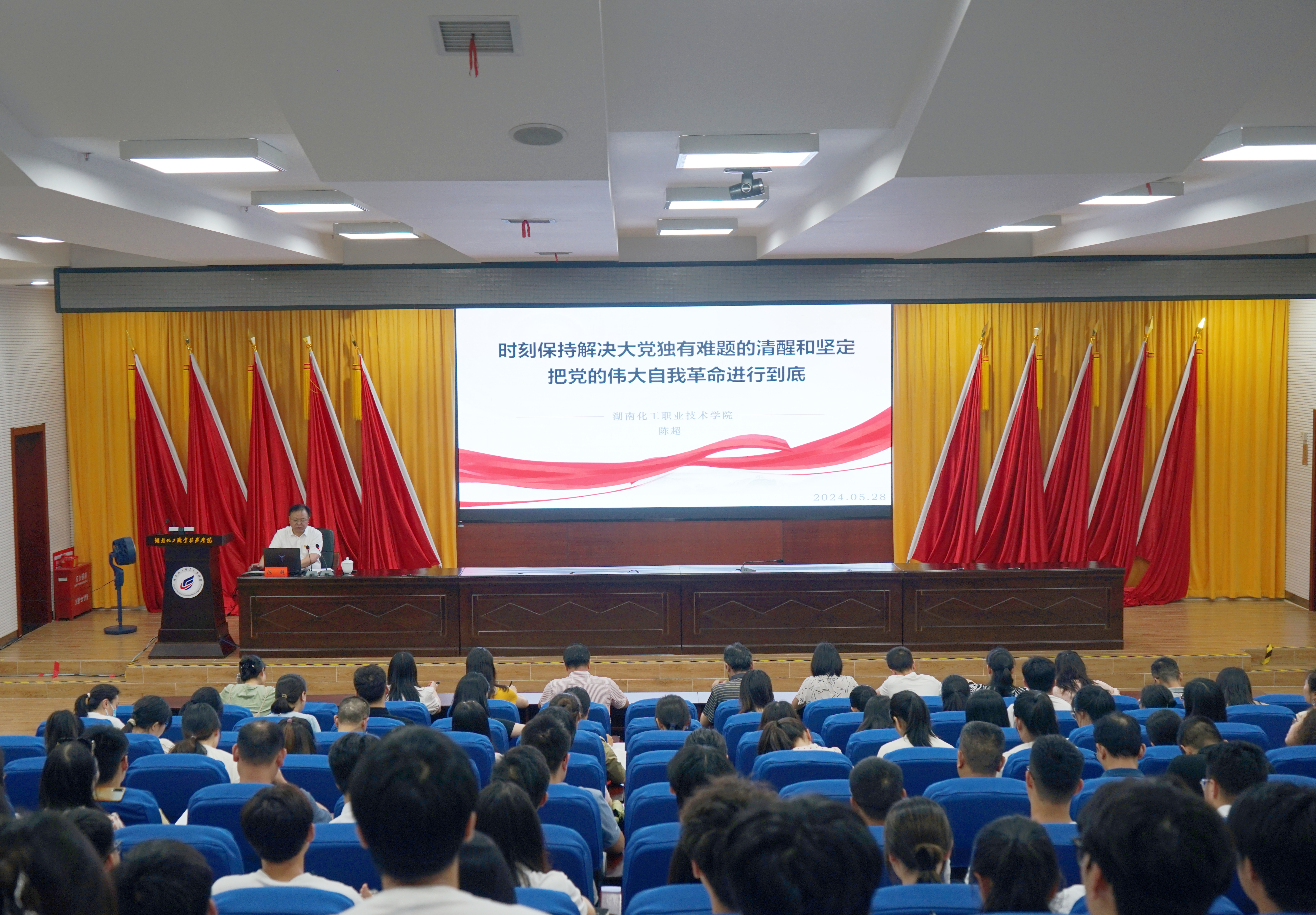 5月28日下午,在学校图书馆一楼二号报告厅,学校党委书记陈超教授以《时刻保持解决大党独有难题的清醒和坚定,把党的伟大自我革命进行到底》为题,为机械工程学院、马克思主义学院师生党员上了一堂深刻而生动的党纪学习教育专题党课。