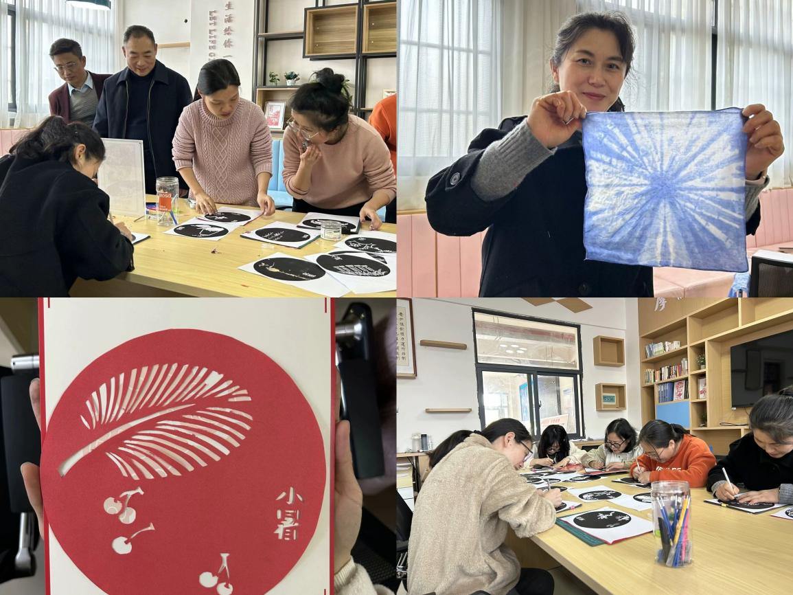 活动现场,“薪火非遗工坊”成员向在场教职工介绍了剪纸、扎染的历史和文化内涵,并详细讲解了剪纸、扎染的基础知识和操作方式。大家拿起工具,认真耐心地完成了手中的作品。此次活动不仅让教职工们感受到了剪纸、扎染等传统文化的独特魅力,还让大家加深了对非遗技艺的理解和热爱。