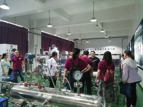 河南应用职业技术学院教学管理干部一行还实地参观了我校现代化工工业中心的啤酒生产车间、煤制甲醇仿真实训工厂、化工单元操作实训中心、国赛场地车间和机电工业中心的智能制造柔性加工生产线、工业机器人技术应用基地、智能控制中心。