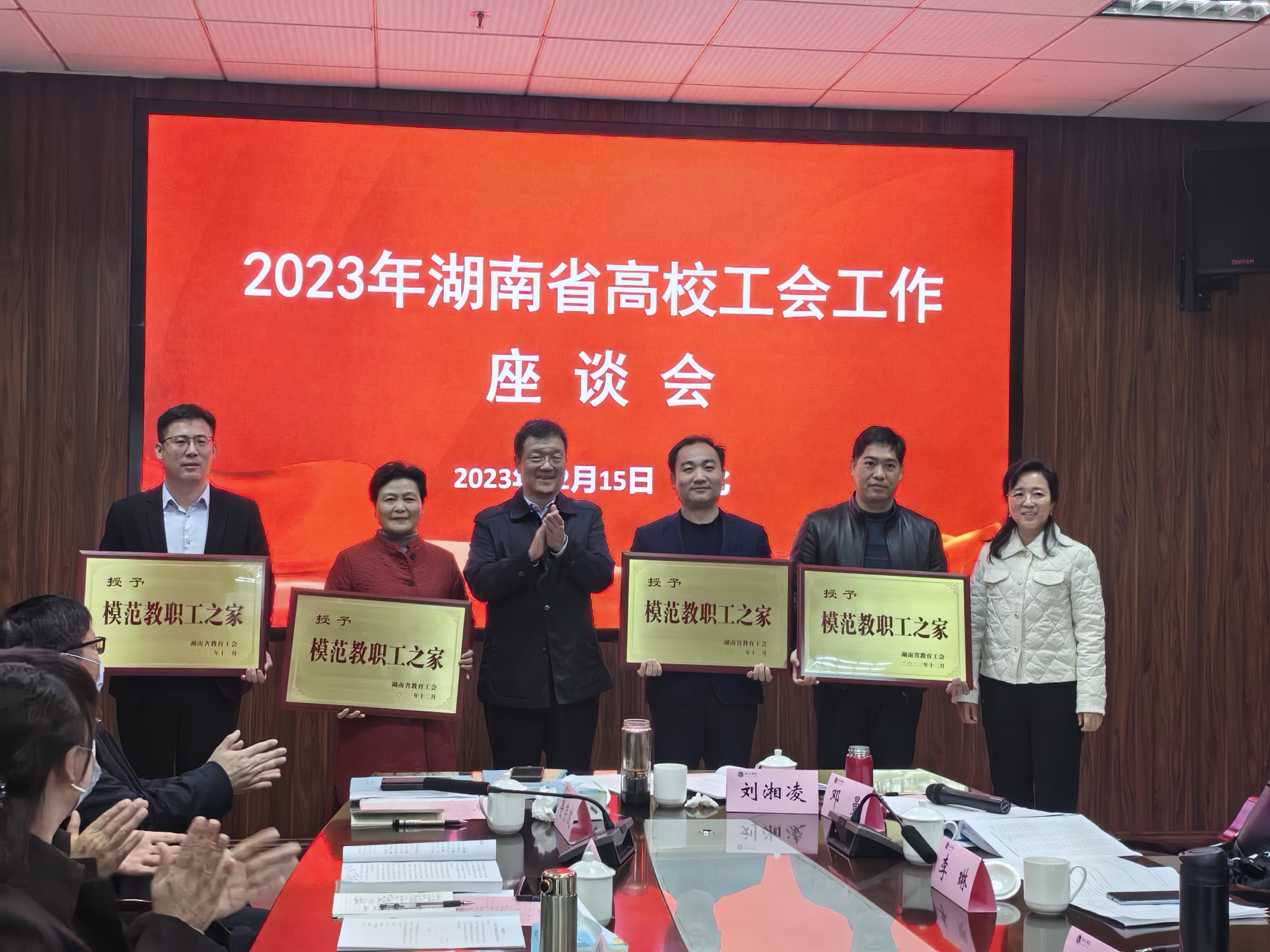 今日,2023年湖南省高校工会工作座谈会召开,我校获评“模范教职工之家”。