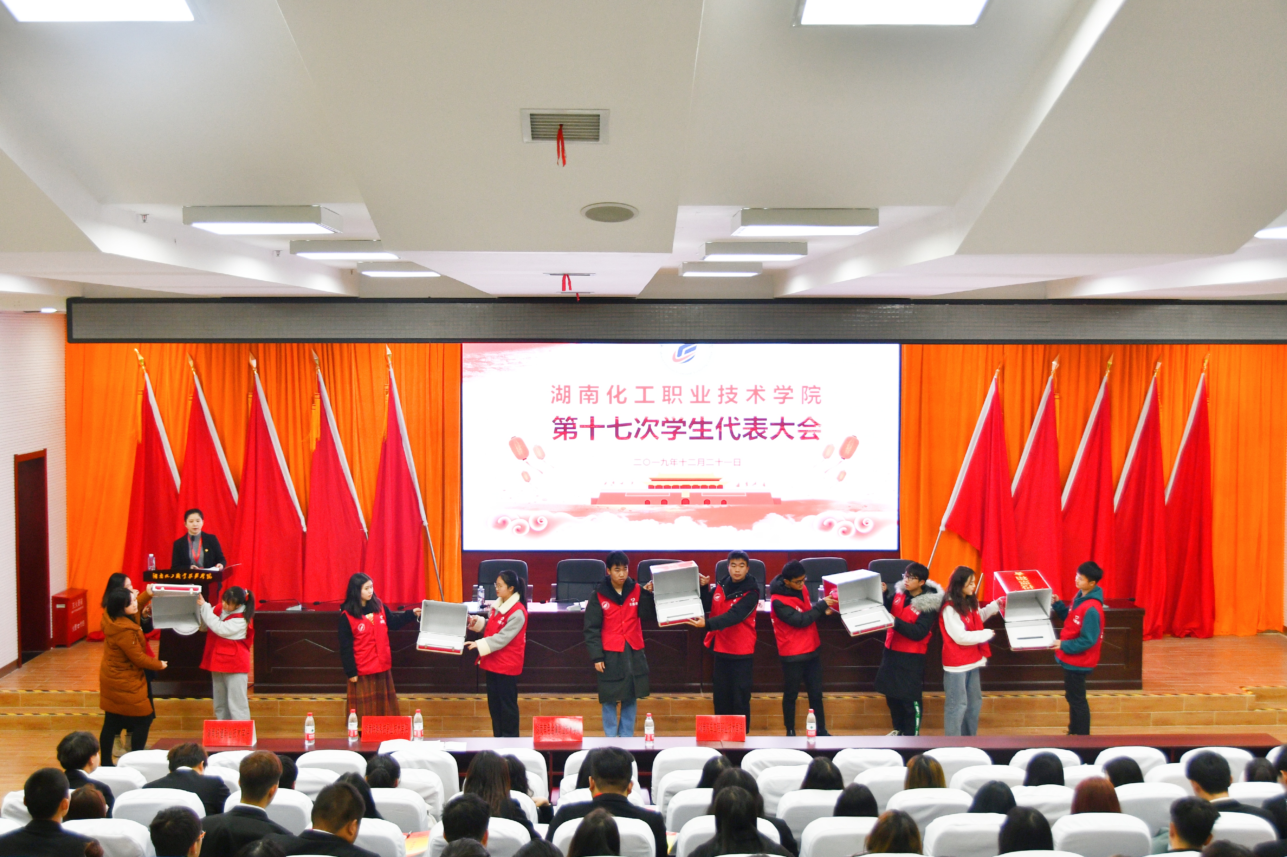 12月21日上午9时,我校第十七次学生代表大会在图书馆一楼报告厅隆重举行。学校党委副书记、校长王雄伟,副校长王为、童孟良、胡颖蔓,党委委员张麦秋、阳良明,各二级学院院长、党总支书记、副书记和相关职能部门负责人出席会议,全校246名学生代表参加了会议。同时出席本次大会的还有湖南铁道职业技术学院、湖南汽车工程职业学院、湖南铁路科技职业技术学院、湖南有色金属职业技术学院等兄弟院校的学生代表。