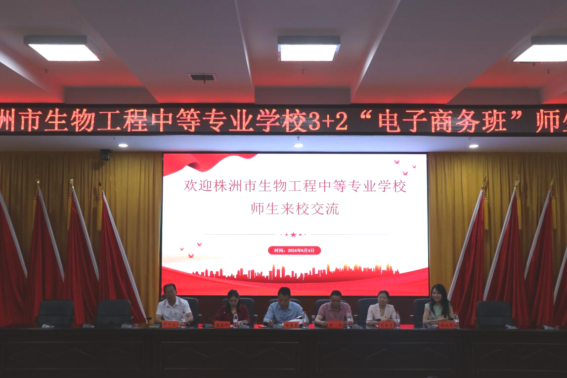 6月4日,株洲市生物工程中等专业学校“3+2”电子商务班51名同学在该校常务副校长尹飞、商务信息部主任舒秋琴一行的带领下,莅临我校开展校园体验日活动。该活动包括学校整体认识、参观校园、聆听讲座和技能竞赛经验交流四个环节。我校副校长田伟军、教务处处长熊美珍及商务贸易学院全体班子成员参与了本次活动。