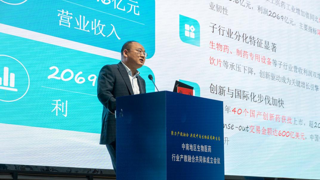 毛六平在致辞中表示,生物医药作为全省重点推进的产业链,正加速从“规模增长”向“量质齐升”跃进。近年来,省工信厅联合教育厅发布了2批22个卓越工程师培养(实践)基地;联合省卫健委等部门共同出台了《湖南省生物医药产业链重点品种培育办法》,培育了2批96个生物医药产业链重点品种;常态化开展校企合作“双进双转”活动,对接企业1800多家。希望共同体进一步整合中南地区生物医药产教资源,凝聚起推动产业发展的更大合力。