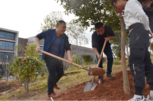 大家伙干劲十足,将一颗颗充满生机和希望的树苗植入坑内,随后将寄语牌悬挂在了各自认捐的树上。一个个树坑的挖成,一棵棵树苗的栽下,象征着一份份绿色的希望;每一滴汗水的流下,每一铲泥土的填充,代表着每一个人的奉献与关爱。温暖的阳光洒在每个人的身上,看着亲手种植的一株株青葱翠绿的金桂矗立在风中摇曳,大家都露出幸福的笑容。