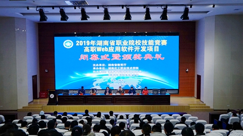 为贯彻党的十九大精神,落实“建设知识型、技能型、创新型劳动者大军,弘扬劳模精神和工匠精神,营造劳动光荣的社会风尚和精益求精的敬业风气”的有关精神,持续推进职业教育教学改革,提升职业教育服务湖南经济转型升级创新发展的能力,展示广大师生精神风貌和职业技能水平,由省教育厅主办、湖南化工职业技术学院承办、湖南省石油化学工业协会和成都中慧科技有限公司协办的2019年湖南省职业院校技能竞赛高职WEB应用软件开发项目在我校成功举行。来自全省各高职院校的45支队伍共计135人参加了此次比赛。