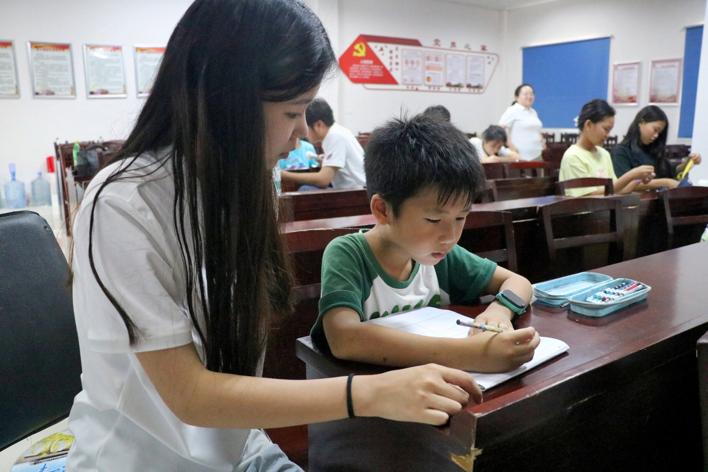 课外作业的辅导是首要任务,孩子们的热情与好奇心像夏天炙热的阳光一样无法忽视。在课堂里,志愿者仔细分析孩子们的学习难点,给予他们耐心的解答和指导,鼓励他们独立思考,培养他们的学习兴趣和自主学习的能力。