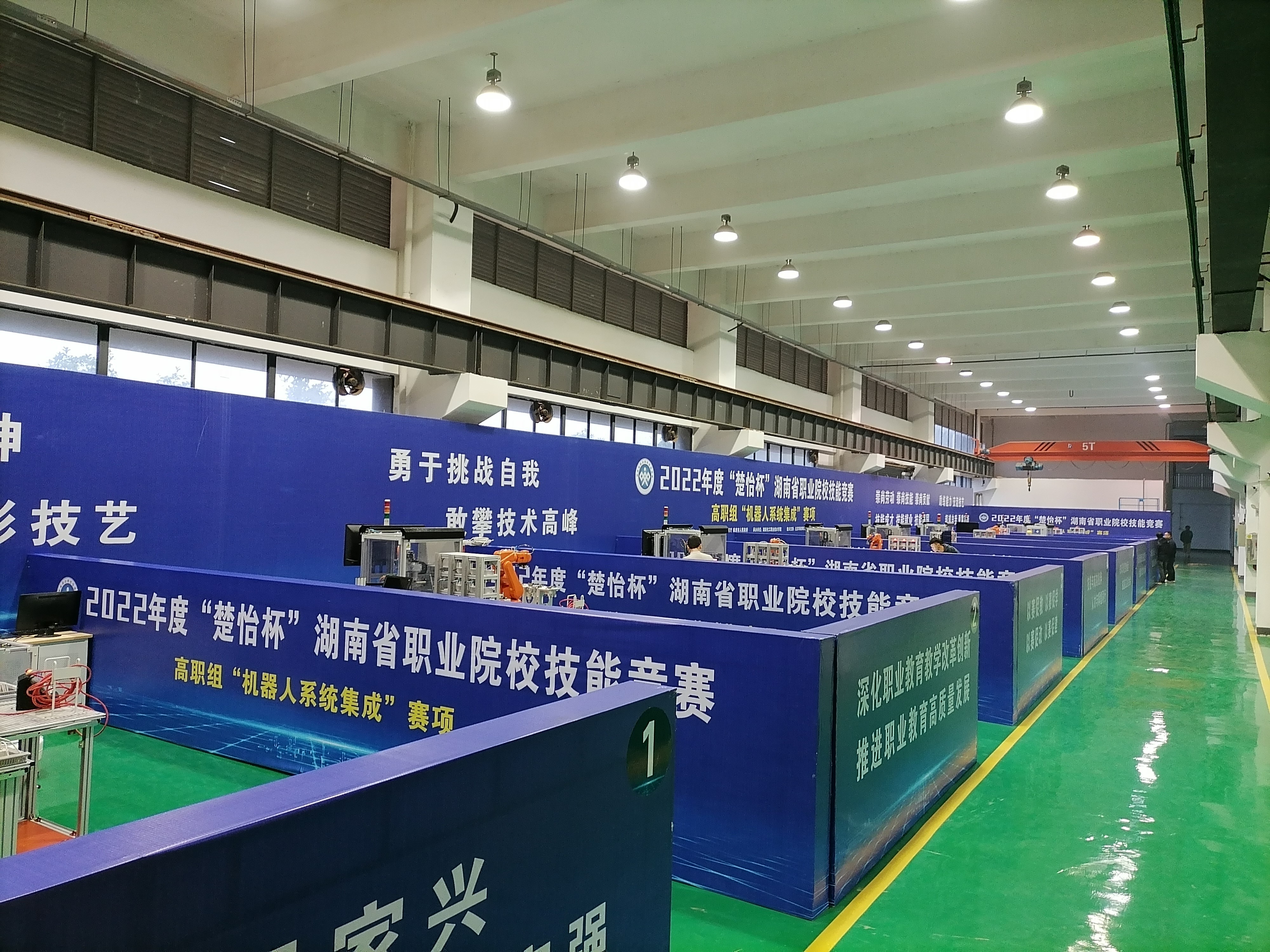 为持续推进职业教育教学改革,展示职业院校师生精神风貌,提高职业院校学子职业技能水平,2022年度“楚怡杯”湖南省职业院校技能竞赛高职高专组装备制造大类“机器人系统集成”赛项于12月25日-28日在湖南化工职业技术学院成功举办,来自全省高职院校的33支代表队参加了本次比赛。