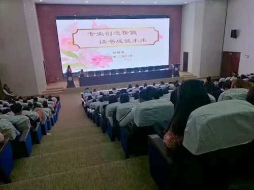 讲座在图书馆二楼报告厅隆重举行,原湖南省步步高集团财务经理邓雨良老师担任本次讲座主讲人,邓雨良老师首先与大家共同探讨了“我来自哪里”;然后结合自己的工作经历与同学们进行了“心得交流分享”;最后,邓雨良老师和同学们畅谈了“我们的未来”,告诉大家,要及时进行职业规划,并围绕目标努力奋斗,要对自己有信心,敢于挑战,勇于挑战。