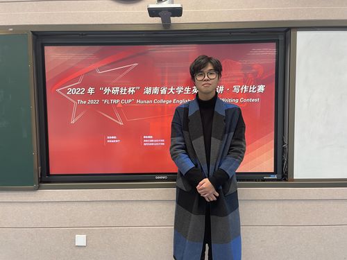 12月底,2022年“外研社杯”湖南省大学生英语演讲·写作比赛圆满落幕。大学英语教研室江友君老师指导的会计22105班王卓琪同学获得英语演讲比赛公共组一等奖;罗晨老师指导的化工装备22103彭晨雨同学获得英语演讲比赛公共组三等奖。此次比赛由湖南省教育厅主办,湖南交通职业技术学院和湘西民族职业技术学院以线上和线下相结合的形式进行,设有一等奖(10%) 、二等奖(20%) 、三等奖(30%),竞争较往年更为激烈。全省共有57所院校250名选手同台竞技。大学英语教研室精心组织英语演讲比赛校级选拔赛,经过两轮校赛的层层筛选,最终从我校50多位选手中选送2名学生参加此次比赛,均获佳绩。