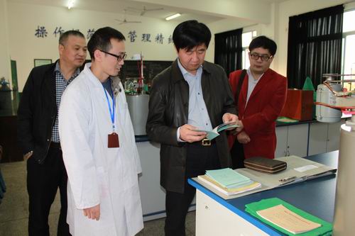 专家在我院化工分析实训室考察,观看学生实训记录