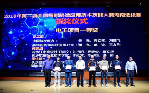据悉,本次大赛大赛由湖南省人社厅、湖南省总工会联合主办,为配合“中国制造2025”国家战略和第46届上海世界技能大赛,按照第二届全国智能制造应用技术技能大赛技术要求和组织方式开展,共有来自全省12个市州46支代表队的138名选手参加了全省选拔赛。选拔赛由理论考试和实际操作两部分组成,设钳工(切削加工智能制造单元安装与调试)和电工(切削加工智能制造单元生产与管控)两个赛项,各赛项分职工组、教师组和学生组3个竞赛组别,均为三人团体赛,各赛项获得职工组、教师组全省选拔赛一等奖第一名的三名选手授予“湖南省技术能手”荣誉称号,获得全省选拔赛一等奖的选手晋升技师职业资格,已具有技师职业资格的,晋升高级技师职业资格,并代表湖南省参加决赛。各赛项获得学生组全省选拔赛一等奖的选手,晋升技师职业资格,并代表湖南省参加决赛。本次湖南省选拔赛在株洲、衡阳、娄底三地进行,全国决赛将于11月上中旬在山东济南举办。