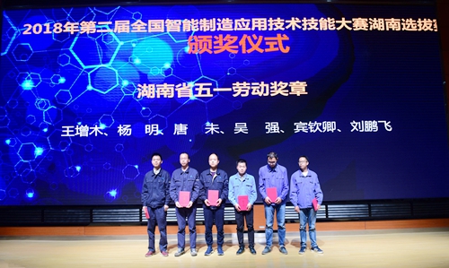 省人社厅鉴定中心主任廖云飞宣读竞赛结果,省人社厅职业能力建设处副处长刘旸宣读大赛表彰通报,省总工会副巡视员王湘静宣读湖南省五一劳动奖章表彰决定。闭幕式上,对获奖选手和“湖南省技术能手”、“湖南省五一劳动奖章”的获得者以及获得比赛“突出贡献奖”的单位进行颁奖。
