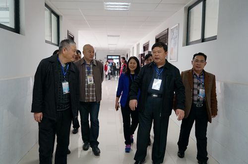学院党委书记刘望、校长王雄伟、副校长隆平和党政办主任张麦秋一起走在巡考路上