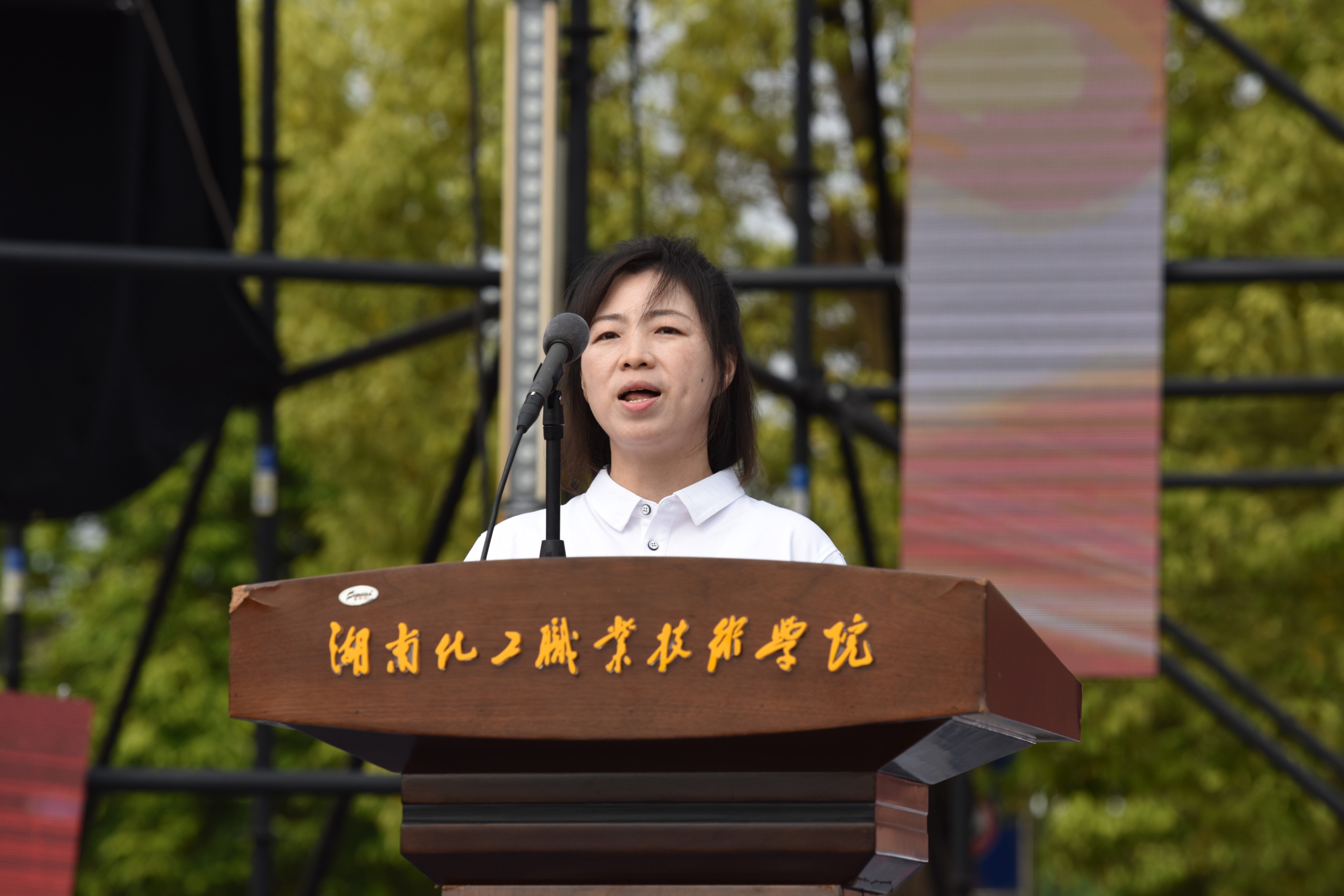 在开学典礼上,学校校长隆平教授首先致辞,她对新同学的到来表示热烈欢迎,并祝愿同学们在湖南化工职业技术学院扬起理想的风帆,挥洒绚烂的青春。她对新同学提出殷切希望:一是要心怀梦想,肩负时代希望。认清肩负的使命和责任,自觉把个人命运同国家和民族的命运结合在一起,心怀服务社会、奉献国家之梦想,努力实现人生价值。二是要合理规划,树立人生目标。要把社会主义核心价值观变成日常的行为准则,要对标现代大学生的合格标准,做新时代的奋斗者。三是要知行合一,展现最美风采。要对标现代大学生的合格标准,做新时代的奋斗者。要善于学习,练真本领,要知行合一,做实干家,要积极培育“工匠”精神,凡事都要讲究科学、尊重规律,要有韧性、有耐力,要做成、做好、做精,要精雕细琢、精益求精。要让自己展现最美的风采!