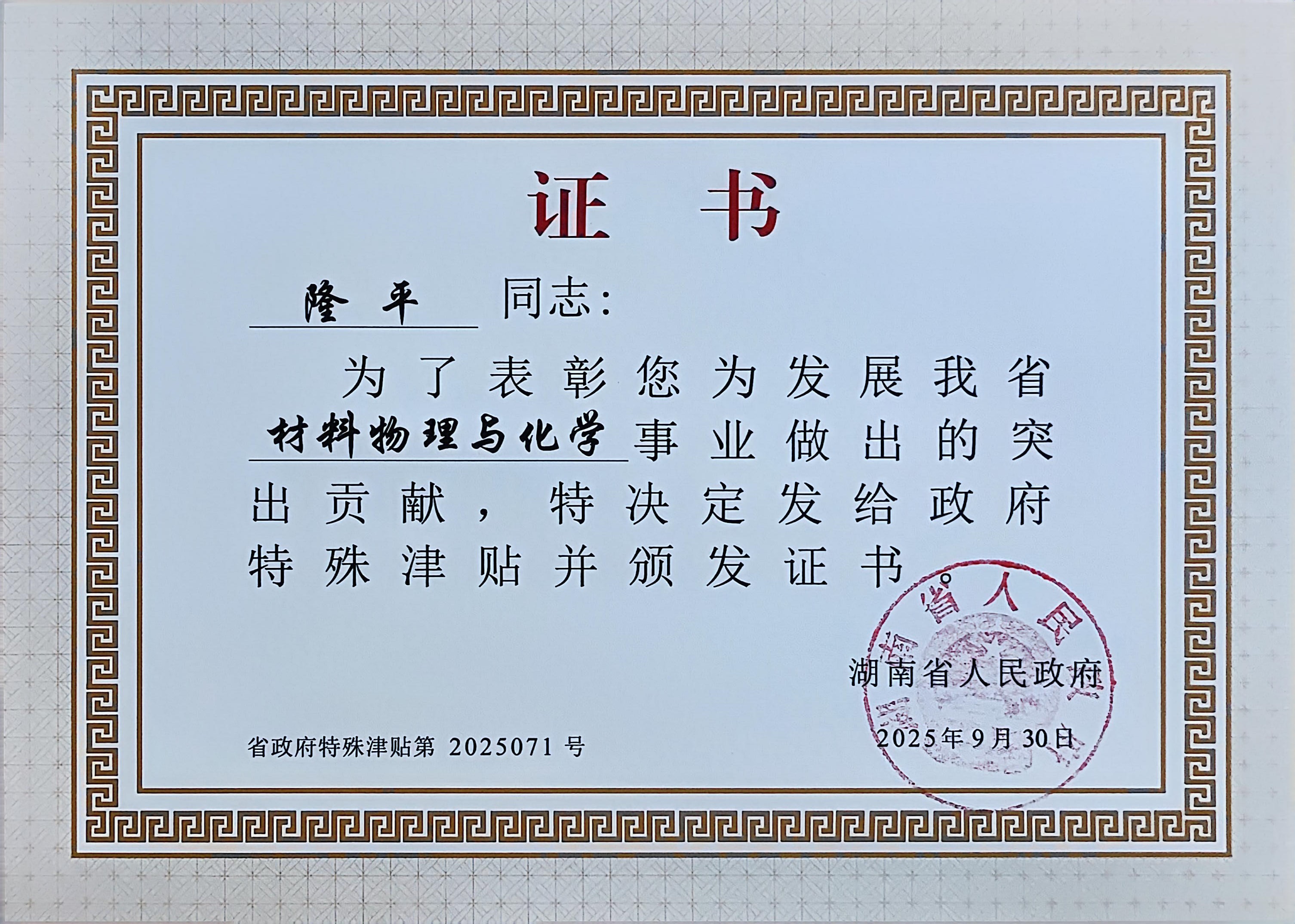 近日,我校领取了享受第七届湖南省政府特殊津贴的两名教师的荣誉证书:一位是深耕职业教育前沿的专业技术人员代表隆平同志(全省总计80名),另一位是传承创新湘菜技艺的高技能人才代表盛金朋同志(全省总计20名)。他们的入选,充分彰显了我校长期以来坚持人才强校战略,着力打造高素质专业化教师队伍、培养高技术高技能人才、积极服务我省“三高四新”战略定位和使命任务的生动体现。