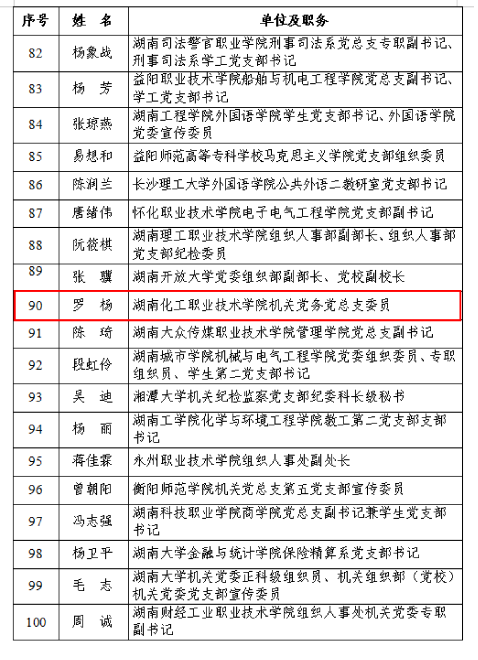 近日,省委教育工委公布全省高校党组织“对标争先”计划第四批项目评选结果,我校共有5个项目入选。其中,智能控制工程学院党总支入选全省高校党建工作“标杆院系”,机械工程学院教工党支部入选全省高校党建工作“样板支部”,化学工程学院教工党支部书记工作室入选全省高校党建工作“双带头人”教师党支部书记工作室培育创建单位,欧彦麟同志入选全省高校党建工作“双带头人标兵”,罗杨同志入选全省高校党建工作“党务工作示范岗”。
