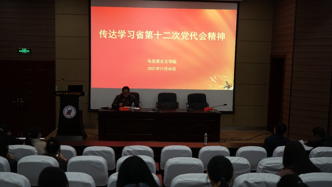 11月30日下午,马克思主义学院召开专题会议传达学习省第十二次党代会精神,马院全体教师参加会议。