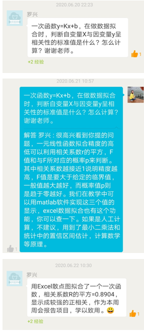 意想不到的收获接踵而来,有学员将自己实际工作中的操作流程描述成一个数据拟合建立函数模型;有学员进一步探究了如何判断函数拟合精度,并活学活用到周会报告项目中 。这些来自企业员工的真实描述既丰富了教师的教学案例库,也实实在在让有需要学员用数学方法解决了实际问题。这也再一次印证了“三教改革”不是一句口号,落地的教师、教材和教法改革是可以给高等数学带来不一样的课堂体验和收获。