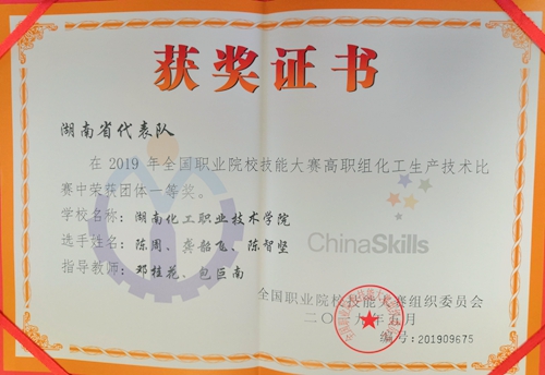 5月17日上午,2019年全国职业院校技能大赛高职组“化工生产技术”赛项在广东轻工职业技术学院顺利闭赛。来自全国27个省、市、自治区,62所高职院校代表队参加角逐,聚集了全国职业院校最顶尖的186名化工生产技术专业高手,是历年来参赛人数最多的一次。我校邓桂花、包巨南、江金龙、赵志雄、廖红光、周国娥老师指导的由学生陈周、龚韶飞、陈智坚组成的代表队获得一等奖,为学校斩获了2019年全国职业院校技能大赛的第二枚金牌,也是连续三年在全国职业院校技能大赛该赛项中斩获一等奖。