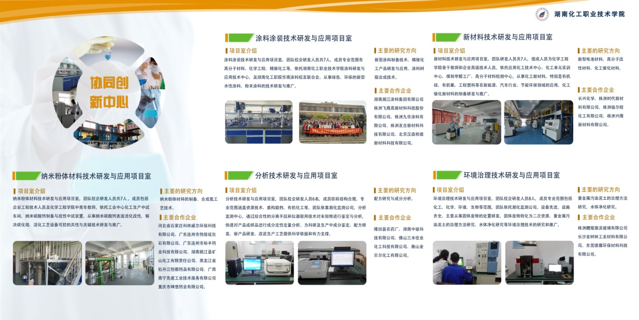 科研平台建设实现重大突破,成功获批国家自然科学基金依托单位,取得独立申报和承担国家自然科学基金项目的资格。国家自然科学基金项目是我国主要资助自然科学基础研究的主渠道之一。申报获批是我校近年来在科研服务能力、综合实力与影响力等方面提升的结果,也为我校科研人员申请国家级科研项目搭建了另一个良好平台,为学校专业建设、提升社会服务能力和区域经济发展提供了有力支撑。此外湖南省石化中小企业科技创新服务平台建设顺利通过验收,株洲化工产业技术创新战略联盟及多个产学研合作基地建设工作顺利推进;依托职教集团成员单位,建立了以纳米粉体材料、涂料涂装、分析检测、环境处理等技术研发应用与能源测试项目为载体的应用化工技术协同创新中心,共建了涂料研发与应用技术中心、化妆品生产与品牌推广中心、天然药物提取工程技术研发中心和自动化应用技术研创工作室等研发机构;联合校友会,成立了华南涂料行业校友分会、华南化妆品行业校友分会;推动“一带一路”建设工作,与巴基斯坦签订成立“中巴经济走廊化工涂料技术交流中心”项目,形成了“平台联动、协同创新”的政校企合作机制,保障了学院与中小石化企业的合作深入、持续、全面开展。