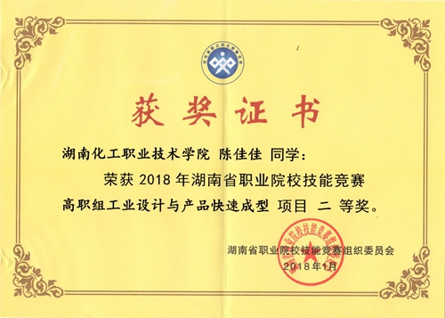 1月19日,2018年湖南省职业院校技能大赛高职组 “工业设计与产品快速成型”、 “工业产品数字化设计与制造”等4个赛项的比赛在湖南工业职业技术学院落下帷幕。我校在“工业设计与产品快速成型”赛项中获团体二等奖(第2名)的好成绩。