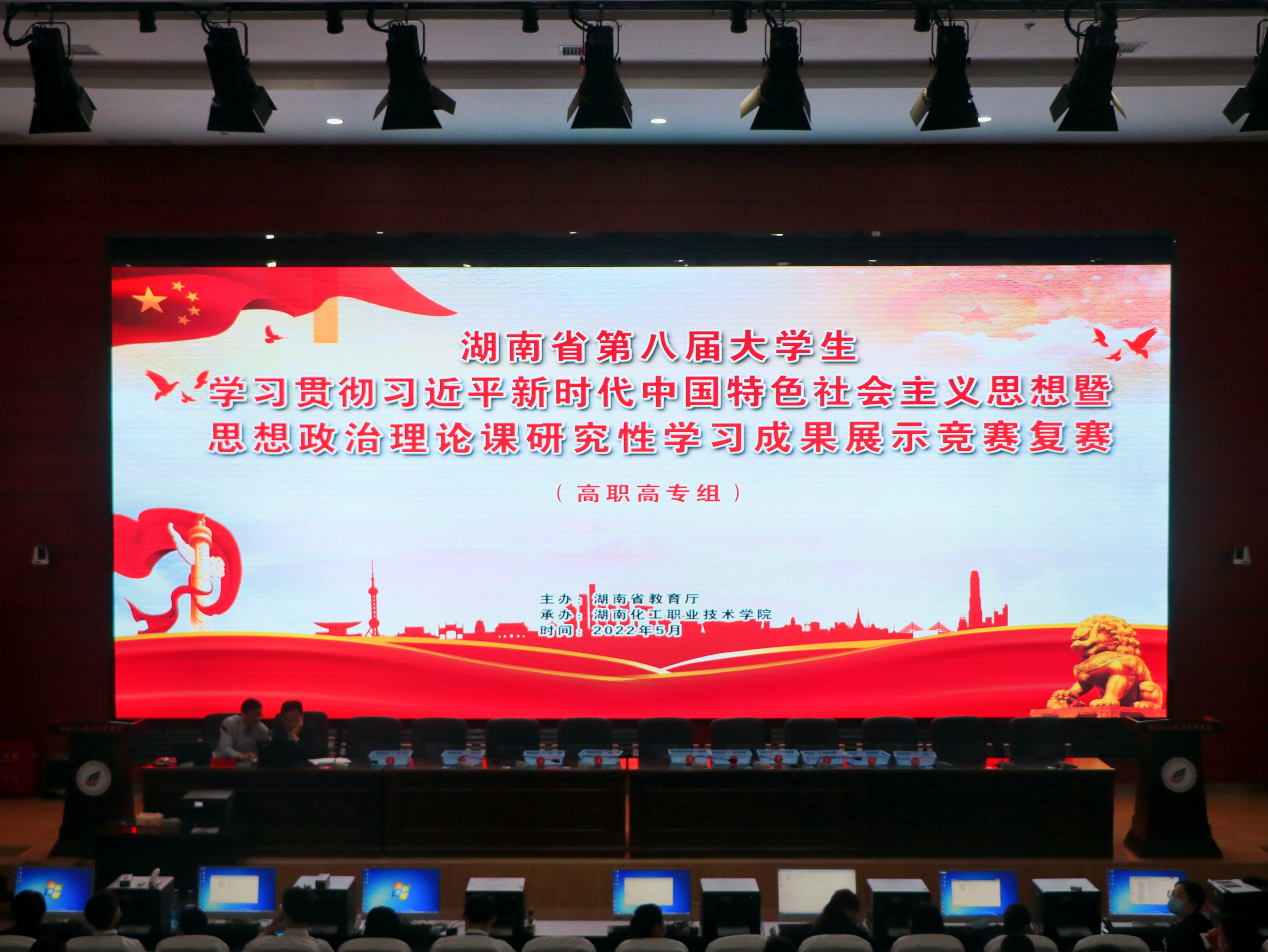 为深入贯彻落实新时代学校思想政治理论课改革创新要求,全面推动习近平新时代中国特色社会主义思想“进教材、进课堂、进头脑”工作,进一步提升思想政治理论课教学质量,激发大学生思想政治理论学习积极性,2022年5月22日上午,由湖南省教育厅主办,我校承办的“湖南省第八届大学生学习贯彻习近平新时代中国特色社会主义思想暨思想政治理论课研究性学习成果展示竞赛复赛(高职高专组)”在图书馆二楼主会场及励志楼二楼分会场顺利举行。