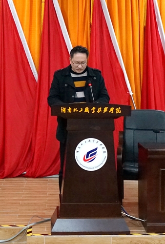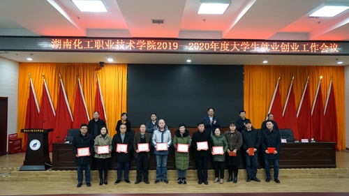 陈超校长宣读了《关于表彰2019-2020年度就业创业工作先进单位和优秀个人的决定》。他在讲话中充分肯定了今年以来学校在就业创业工作中取得的成绩。他指出,我校2020届毕业生初次就业率在新冠疫情的影响下仍然达到79.15%,超过教育部规定的70% 以上的要求;组织参加湖南省“挑战杯”大学生创新创业大赛获金奖1项、银奖1项、铜奖3项,参加湖南省黄炎培职业教育奖创业规划大赛获三等奖1项;学校在今年的湖南省普通高等学校就业创业工作“一把手工程”督查中再次被评为优秀单位,这是学校连续第六次获评“一把手工程”优秀单位。他代表学校对获得2019-2020年度大学生就业创业工作先进单位和个人表示热烈祝贺和衷心感谢,并号召全校教职员工向先进学习,努力工作,锐意进取,乐于奉献,使我校大学生就业创业工作再上新台阶。