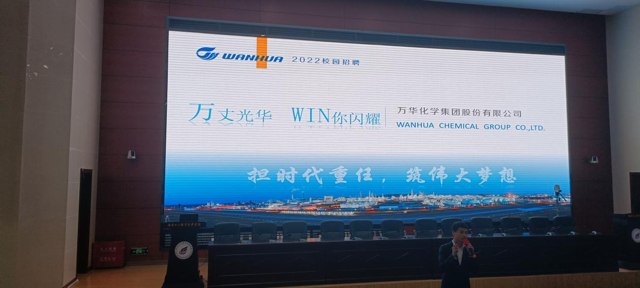 10月22日上午10时, 开学伊始,2021级新生刚刚完成军训才开始正式上课,万华化学集团股份有限公司就迫不及待来校招聘2021级新生组建现代学徒制班。薪酬非常优厚,税前年收入14.8万,并为每个员工提供一套成本价福利房,公司的招聘宣讲得到了化工类同学们的热烈响应,可以容纳500人的报告厅座无虚席,同学们跃跃欲试,纷纷报名应聘。这已经是公司第三次来校招聘化工类学生了,此前已经招聘了2019级和2020级的160多位同学。
