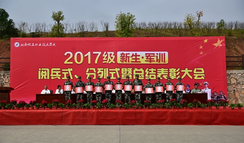 学校举行新生军训阅兵式、分列式暨总结表彰大会