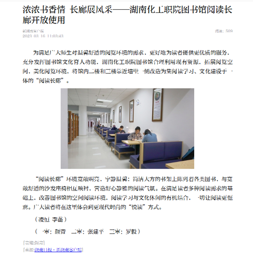 新湖南:浓浓书香情 长廊展风采——湖南化工职院图书馆阅读长廊开放使用