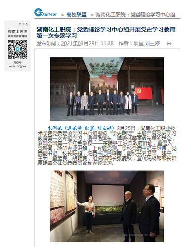 湖南教育新闻网:湖南化工职院 党委理论学习中心组开展党史学习教育第一次专题学习