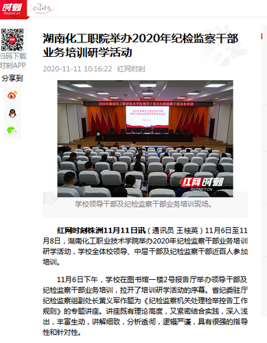 红网时刻株洲11月11日讯(通讯员 王桂英)11月6日至11月8日,湖南化工职业技术学院举办2020年纪检监察干部业务培训研学活动,学校全体校领导、中层干部及纪检监察干部近百人参加培训。
