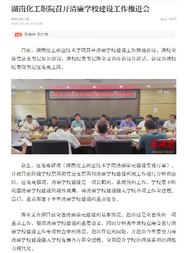 新湖南:湖南化工职院召开清廉学校建设工作推进会