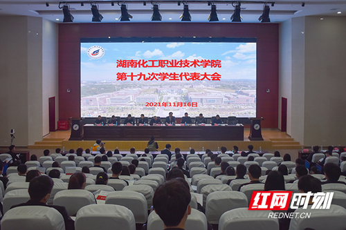 红网时刻11月18日讯(通讯员 朱熠 刘菠 姚佳琪)11月16日,湖南化工职业技术学院第十九次学生代表大会召开。学校党委书记王雄伟、校长陈超、副校长胡颖蔓以及团委全体成员、学工等相关职能部门负责人、各二级学院党总支副书记出席了会议,全校350余名学生代表参加了会议。同时,出席本次大会的还有湖南铁道职业技术学院、湖南铁路科技职业技术学院、湖南汽车工程职业学院、湖南有色金属职业技术学院等兄弟院校的学生代表。