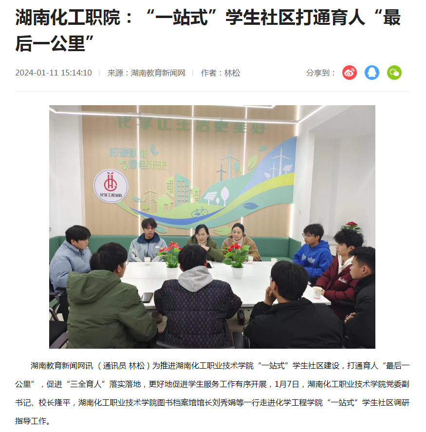湖南教育新闻网:湖南化工职院:“一站式”学生社区打通育人“最后一公里”