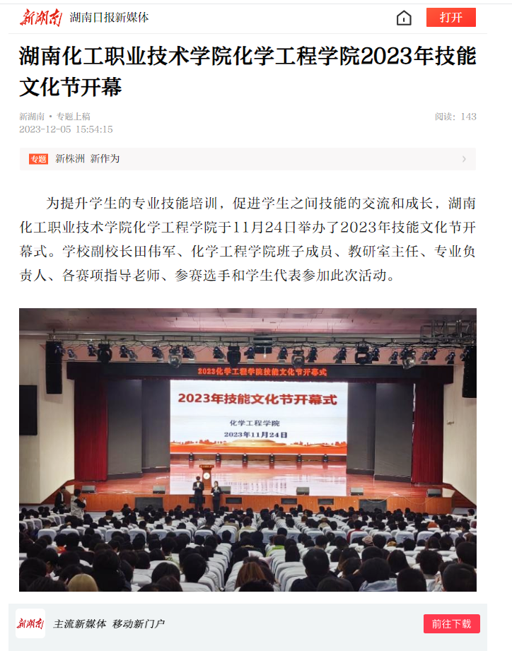新湖南:湖南化工职业技术学院化学工程学院2023年技能文化节开幕